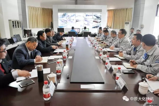 在天然氣化工裝置區(qū),馬富國(guó)在聽(tīng)取了有關(guān)生產(chǎn)裝置的運(yùn)行情況介紹后,又向化肥事業(yè)部的管理人員詳細(xì)詢問(wèn)了他們?cè)诮?jīng)營(yíng)管理、員工培訓(xùn)、新產(chǎn)品開(kāi)發(fā)等方面的好經(jīng)驗(yàn)、好做法,并勉勵(lì)大家不僅要優(yōu)化裝置運(yùn)行,搞好安全生產(chǎn),而且要不斷進(jìn)行知識(shí)更新,開(kāi)闊眼界,努力開(kāi)發(fā)出具有高附加值的產(chǎn)品,走高端發(fā)展的道路。在煤化工裝置區(qū),馬富國(guó)親切看望了生產(chǎn)一線員工,并對(duì)甲醇裝置長(zhǎng)周期運(yùn)行所取得的成績(jī)給予了充分肯定,同時(shí)要求甲醇事業(yè)部要安全、環(huán)保一起抓,精心操作,穩(wěn)定運(yùn)行。在中原大化公司展廳,馬富國(guó)一行興致勃勃地參觀了公司發(fā)展歷程展覽,并指示中原大化要扎實(shí)做好綠宇公司新三板上市的各項(xiàng)工作,加快推進(jìn)上市步伐。